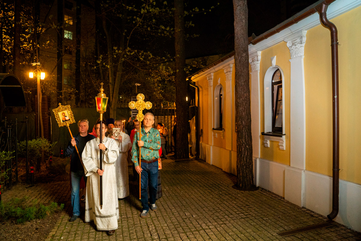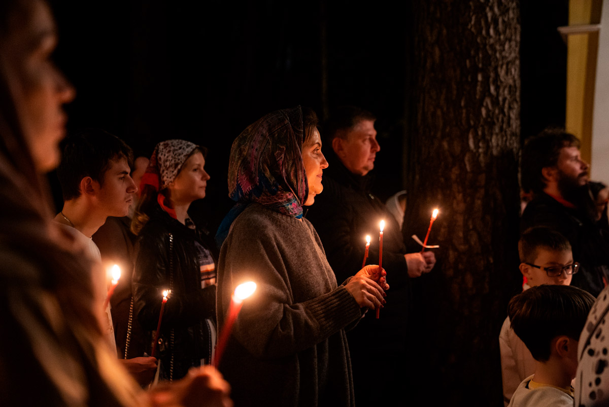 Ночная служба началась крестным ходом вокруг храма. Когда распахнулись Царские врата и раздалось долгожданное «Христос Воскресе!», казалось, сама тьма расступилась перед ликующим светом.