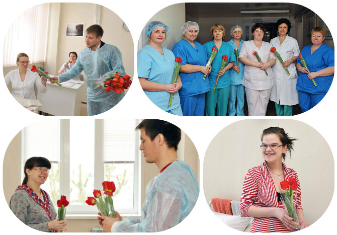Сотрудники АПЗ с охапками цветов посетили Арзмасский родильный дом и поздравили с наступающим Международным женским днём молодых и будущих мам, а также женский персонал родильного дома.