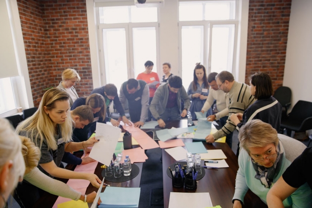 С помощью простых упражнений и мозговых штурмов участники тренинга определили для себя, чем команда отличается от коллектива и почему для эффективной работы, особенно в кризисных ситуациях, нужна именно команда, а не коллектив.