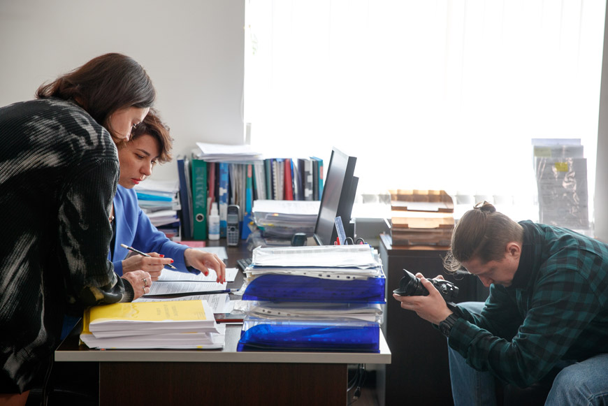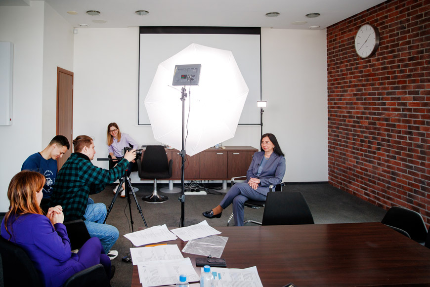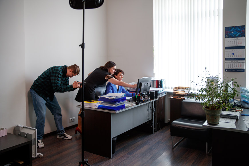 Съёмки корпоративного фильма в московском офисе холдинга, май 2021