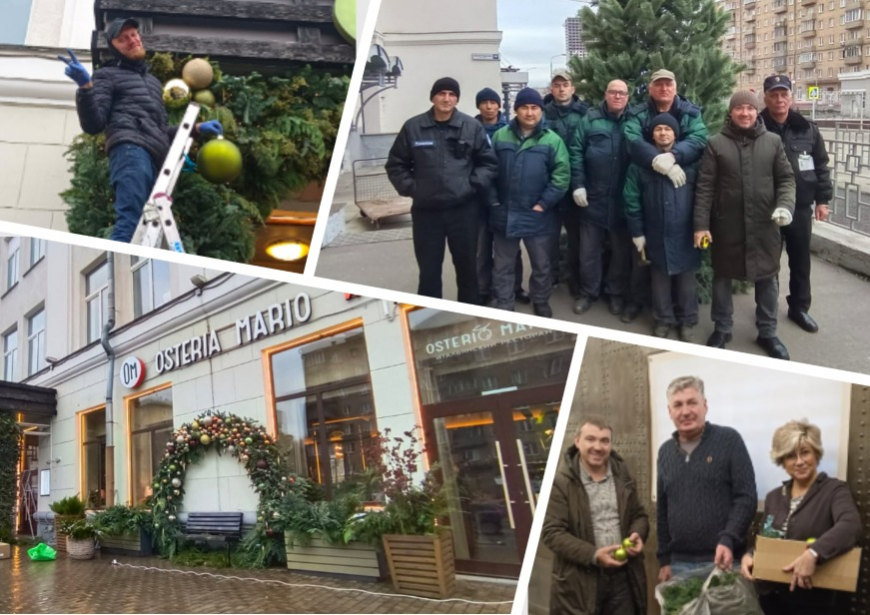 Так ставили и наряжали новогоднюю сосну (новую искусственную сосну вместо старой елки для украшения Балтийской улицы «СОЦИУМ» приобрёл в прошлом году), украшали козырёк входа в Галерею «МОСКВА-СОКОЛ». Кстати, гирлянду для этой цели предоставили арендаторы Галереи – руководители «Синэл-Электрики» Дмитрий и Наталья Проворовы. Директор ресторана Osterio Mario на Балтийской лично поработал монтажником-высотником, чтобы вход в ресторан стал празднично-нарядным. И «Синэл-Электрика», и Osterio Mario – давние партнёры компании «МОСКВА-СОКОЛ», которые охотно участвуют во всех её общественно значимых инициативах.