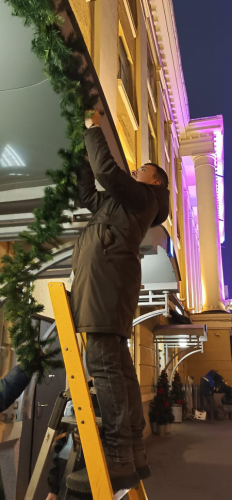 Так вот, в спецбригаду, отвечающую за новогодний вид Балтийской, входят сотрудники службы эксплуатации, службы клининга, в том числе грузчики, охранники из ЧОП «ВПК-БЕЗОПАСНОСТЬ», а также арендаторы Центра культуры и бизнеса «МОСКВА-СОКОЛ». Единение наблюдается трогательное. Собственно, в этом ничего удивительного: эта деятельность повышает настроение. Но это вовсе не значит, что всё просто, ведь выполняются одновременно и высотные, и дизайнерские работы, и технические, и творческие.