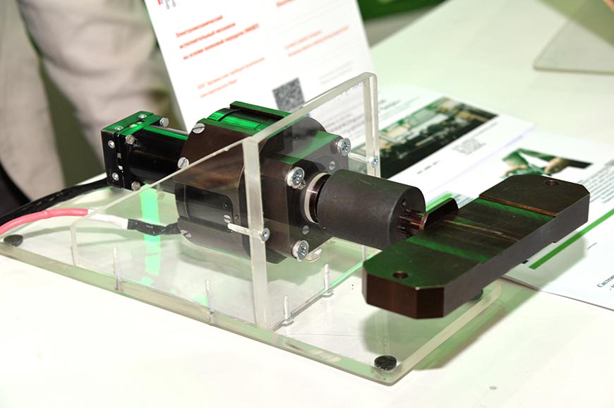 «Инновационный клуб» – так называлась специальная экспозиционная площадка для демонстрации разработок российских изобретателей и их коммерциализации. Попасть сюда можно было по итогам предварительного конкурса инновационных проектов. Специалисты ООО «АПКБ» отбор прошли и презентовали проект, который бюро ведёт несколько лет вместе с ПАО «Компания «Сухой», – электромеханический привод на базе волновой передачи. Устройство уникальное, аналогов в России не имеет, а иностранные образцы уступают ему по многим показателям.