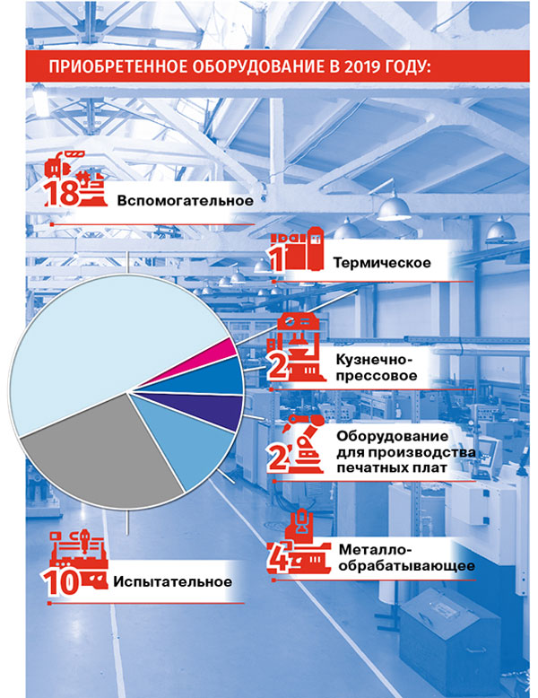 В цехе по производству печатных плат запущены в эксплуатацию гальваническая линия и установка экспонирования. На сборку продолжают поступать новые климатические камеры, которые необходимы при изготовлении изделий для спецтехники.