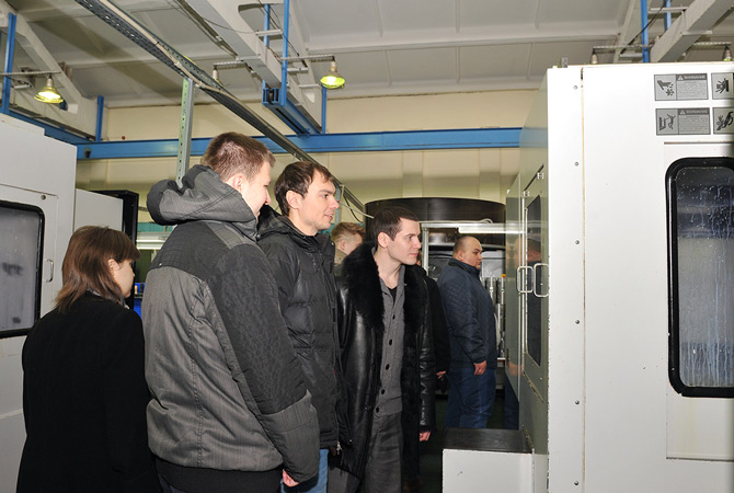 В конференц-зале АО «АПЗ» заместитель главного технолога – главный конструктор технологических систем – Валерий Перенков рассказал молодым учёным об истории АПЗ, планах и перспективах его развития. Затем ребята побывали с экскурсией в механических цехах №№50, 53, 56, 64 и литейном цехе №68. Многие, как оказалось, впервые были на производстве, поэтому интерес вызвало буквально всё: оборудование, технологии, коммуникации, система качества, организация труда и многое другое. Самые любознательные задавали вопросы. Ни один из них не остался без ответа.