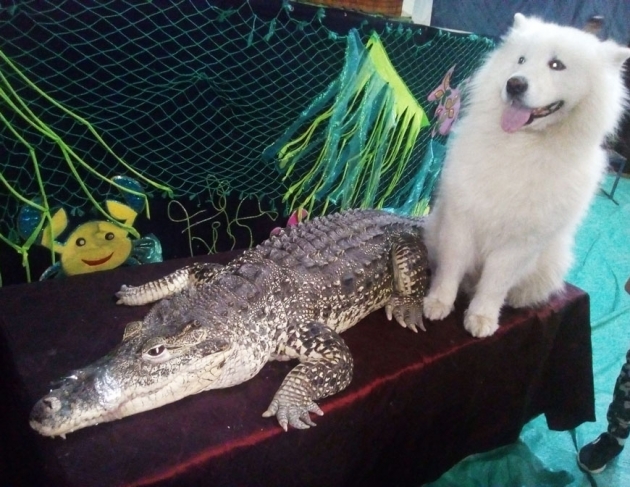 Зрители замирали, когда дрессировщик клал голову в пасть крокодилу, держал его за хвост, брал на руки. Сотрудники компании «СОЦИУМ-КРЕПОСТЬ ПОВОЛЖЬЕ» тоже не могли удержаться от того, чтобы получить немного адреналина в кровь, сфотографировавшись рядышком с одним из самых опасных хищников на планете. Кое-кто даже решился его погладить.