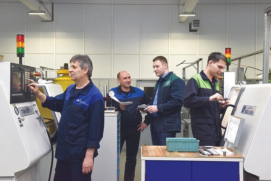 – В данном техпроцессе впервые наряду с режущим инструментом используется специальный выглаживающий инструмент, представляющий алмаз в оправе природного происхождения, – поясняет начальник бюро инструментального хозяйства Дмитрий Волков. – Усилие выглаживания регулируется с помощью сенсорного устройства. Теперь не нужно проводить доводку деталей притирочными пастами или наждачной бумагой. Под воздействием алмаза сферической формы плотность поверхности увеличивается, что и обеспечивает высокую точность обработки детали.