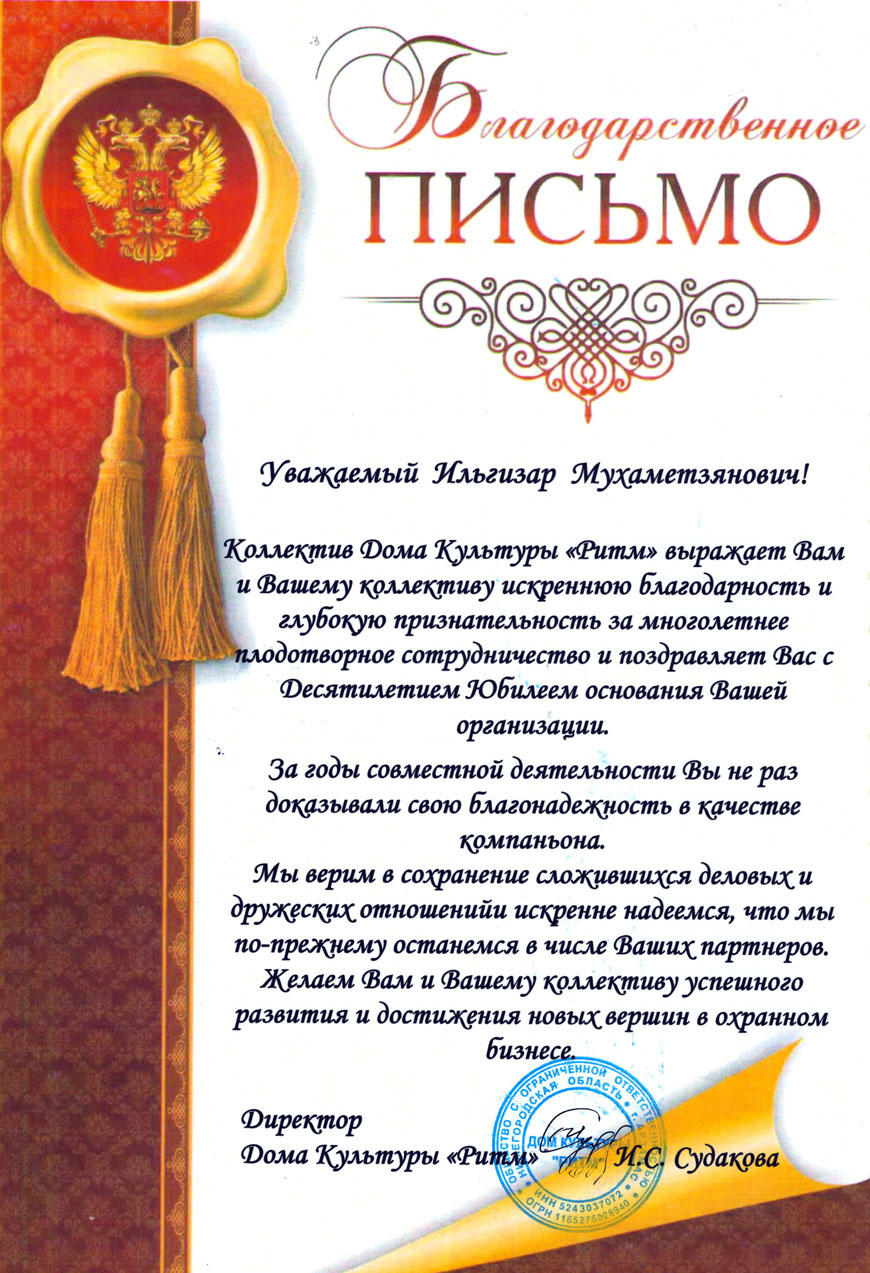 Результат этой деятельности: благодарственные письма, которые регулярно поступают в адрес ЧОПа.