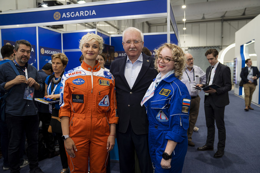 Виктория Кириченко, Глава Асгардии Игорь Ашурбейли и Ксения Орлова на 74-м Международном конгрессе астронавтики в Баку. Октябрь 2023 года