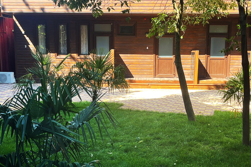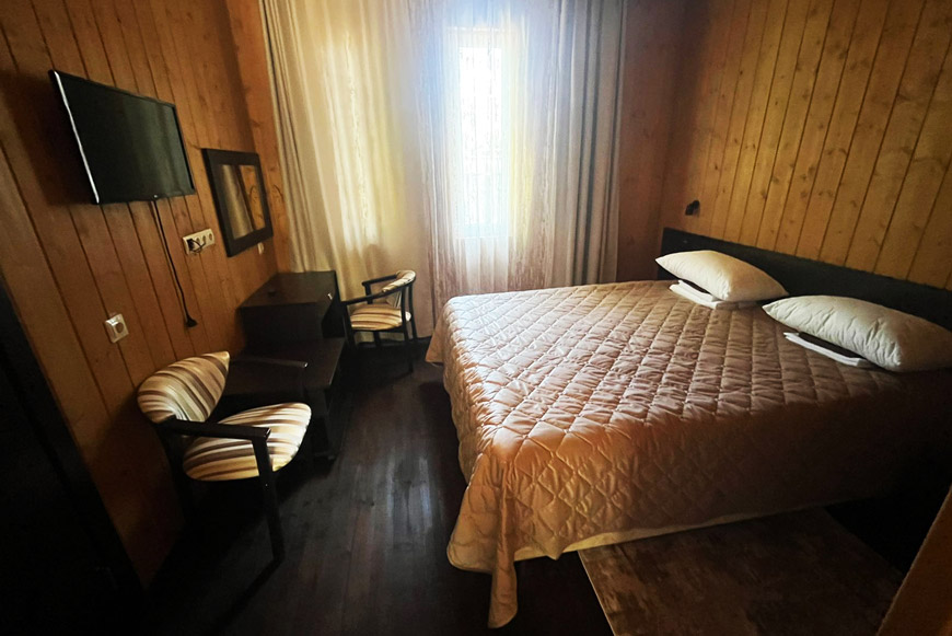 На территории построено пять новых коттеджей. Внутри домиков оборудовано в общей сложности 15 номеров разного формата – одноместных, двухместных и семейных. В каждом номере есть спальня, санузел с душевой и прихожая. Каждый снабжён кондиционером, холодильником, телевизором и вайфаем.