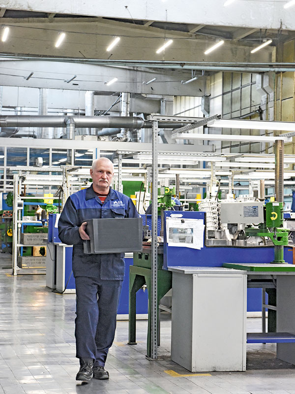 Слесарь МСР цеха №64 Михаил Тютин несёт в защитной таре корпус в БТК для первого предъявления. Фото Елены Галкиной