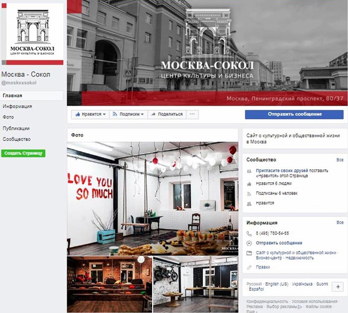 Адрес страницы в Facebook facebook.com/moskvasokol