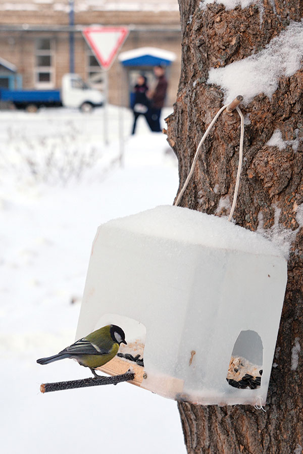 - Кормушка должна продержаться хотя бы одну зиму и не размокнуть. Так что подбирайте соответствующий материал.