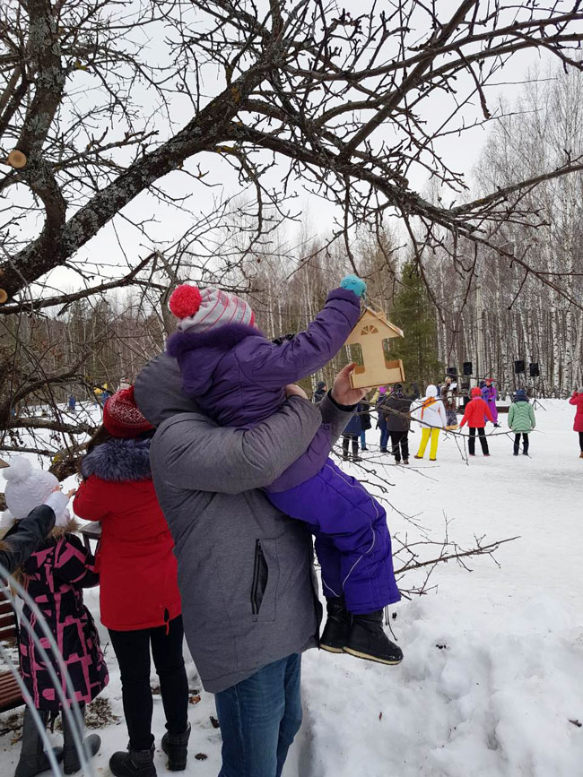 «Домики для пернатых» – под таким названием прошёл экологический флешмоб во время Морозовской Масленицы. Желающим предложили привезти с собой в пансионат на гуляния деревянный скворечник или кормушку для птиц, чтобы повесить в лесу.