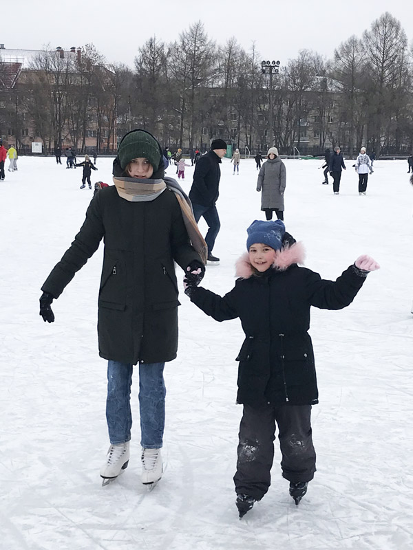 – Мы очень любим всей семьёй ходить на каток. Моей старшей дочери Даше 14 лет, но она с огромным удовольствием гоняет на коньках с младшими – Платоном, ему 10 лет, и восьмилетней Катей.