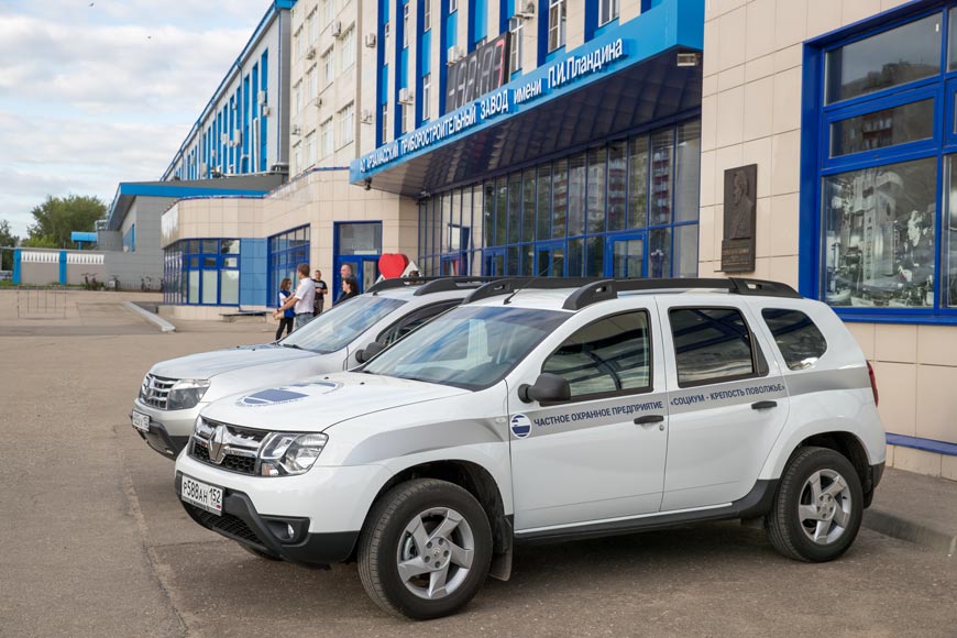 По условиям договоров время прибытия на объект не должно превышать 5 минут. Для этого требуется быстроходный и проходимый транспорт. В парке ЧОПа сейчас один Renault Logan и два новеньких внедорожника Renault Duster. Второй прибыл в распоряжение личного состава 9 августа и первым делом попал в руки дизайнера – надо привести его в соответствие с корпоративным стилем.