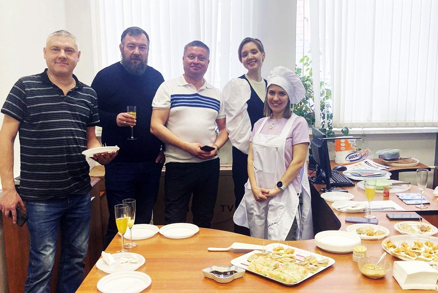 В офисе «МОСКВА-СОКОЛ» с утра для мужчин варили особый кофе, угощали вкусностями, а вечером собрались все вместе для праздничного застолья.