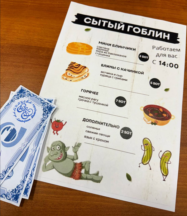 Девушки из компании «СОТЕЛ» («СОЦИУМ-ТЕЛЕКОМ») открыли блинную, где всё приготовили и сервировали сами. Расчёты производились только в местных эксклюзивных денежных единицах. Всё недорого и всё, как любят мужчины.