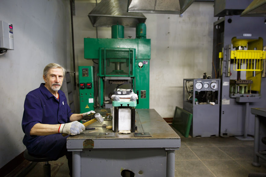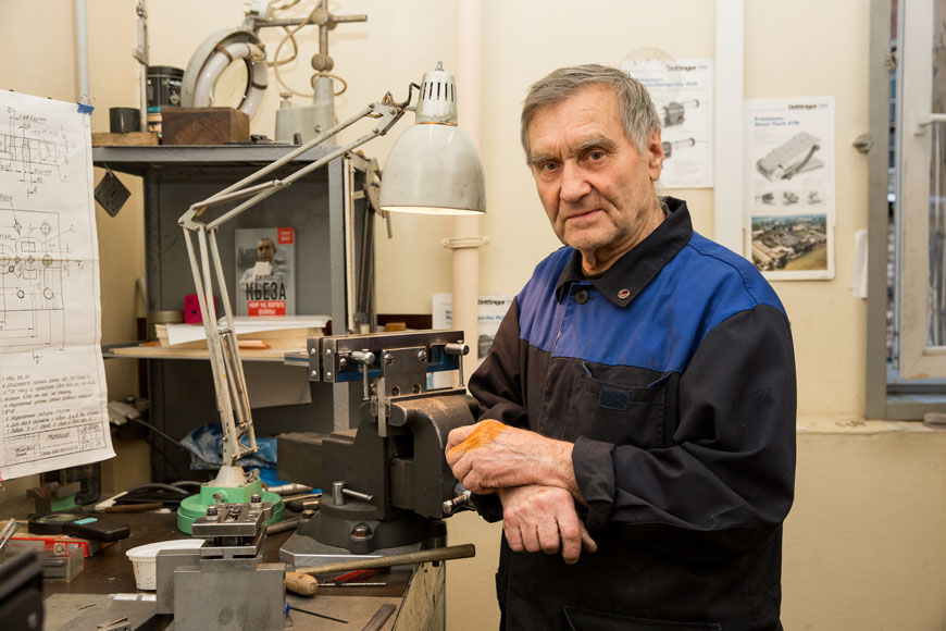 Инструментальщики – элита среди слесарей, а Станислав Михайлович Румянин и вовсе живая легенда. Ему 83 года, и 65 лет он стоит у станка. Работает с пресс-формами – одной из самых сложных оснасток. Руками подгоняет детали с точностью до сотой доли миллиметра. Для этого требуются виртуозные навыки и чутьё.