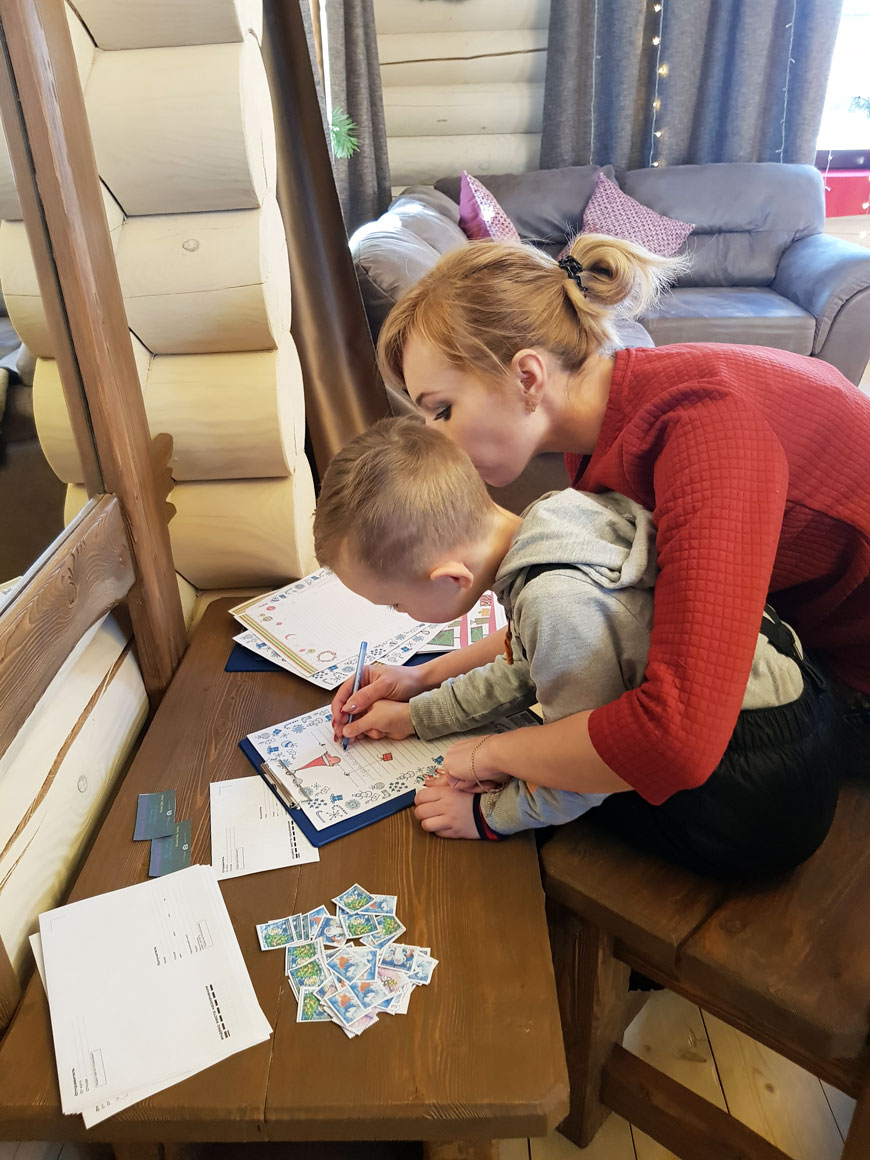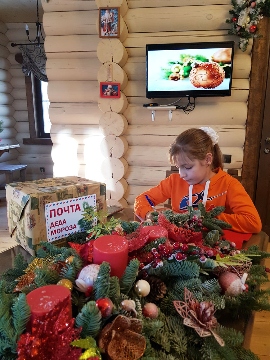 Стоит только перешагнуть порог – и вы погружаетесь в атмосферу сказки и волшебства. Большая ёлка с подарками, фотографии главного волшебника зимы на стенах, валенки с узорами, необычная посуда и мебель – здесь всё обустроено для того, чтобы Новому году было комфортно.