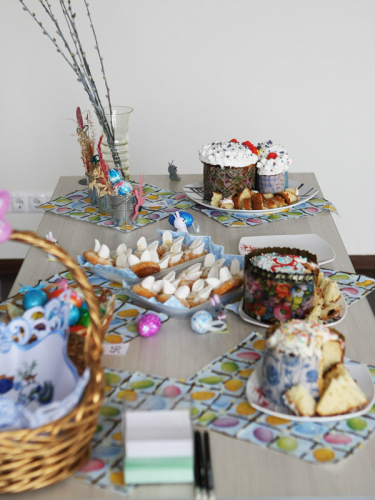 Нарядные куличи, печенье, крашеные яйца и другие пасхальные атрибуты – накрытый стол добавил яркий штрих в этот понедельник. К тому же объединил сотрудников из разных московских компаний холдинга, которые встречаются не каждый день.