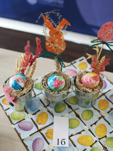 За некоторые представленные на дегустацию шедевры просто не все успели проголосовать. Например, пасхальное яйцо с нанесённым вручную логотипом «СОЦИУМА» от Валерии Гета очень быстро покинуло свою корзину – кто-то не смог устоять. Иначе оно бы точно победило. К счастью, фотограф успел запечатлеть его для истории.