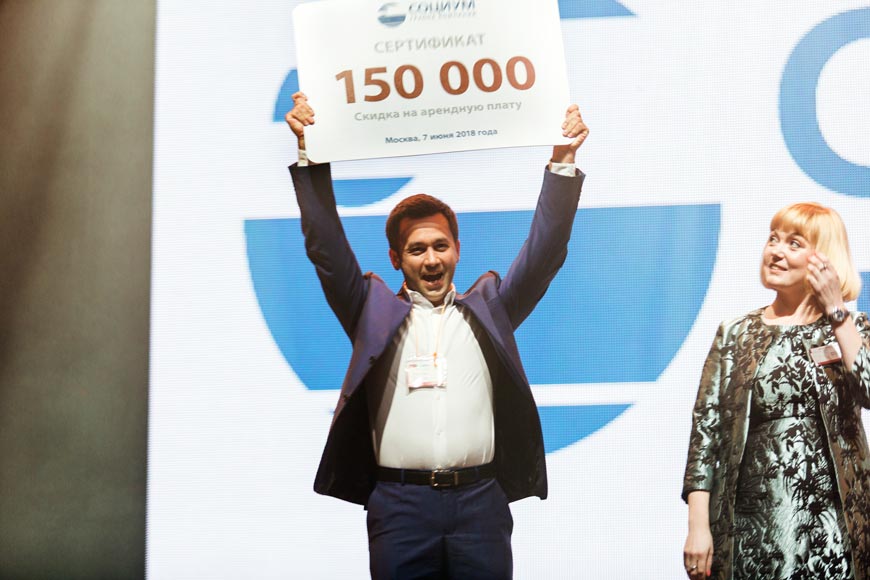 Разыгрывались: 1 месяц, полгода и год бесплатной парковки в Центре культуры и бизнеса «МОСКВА-СОКОЛ», скидка 50 000 рублей на услуги компании «СОТЕЛ», скидка 150 000 рублей на аренду помещений. Главный приз, обеспечивший победителю арендные каникулы, достался Батутному парку «Небо».