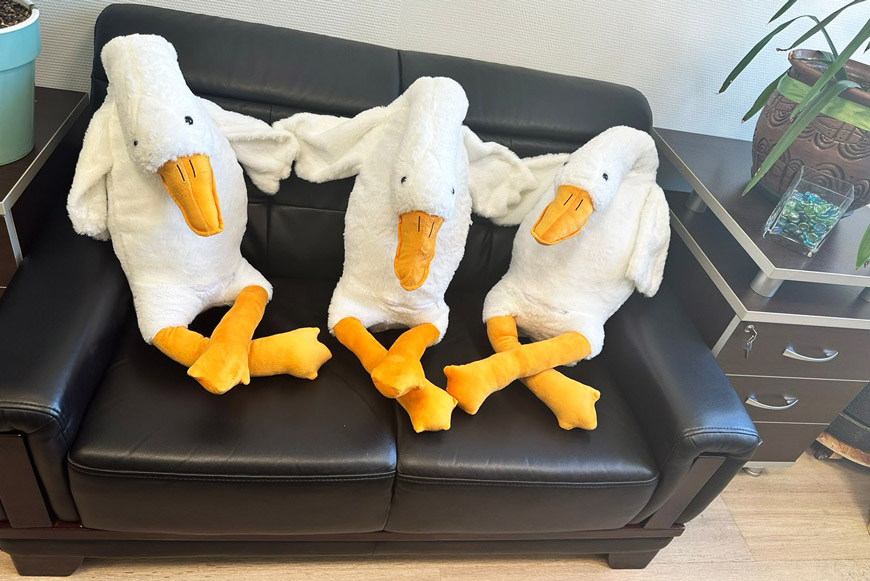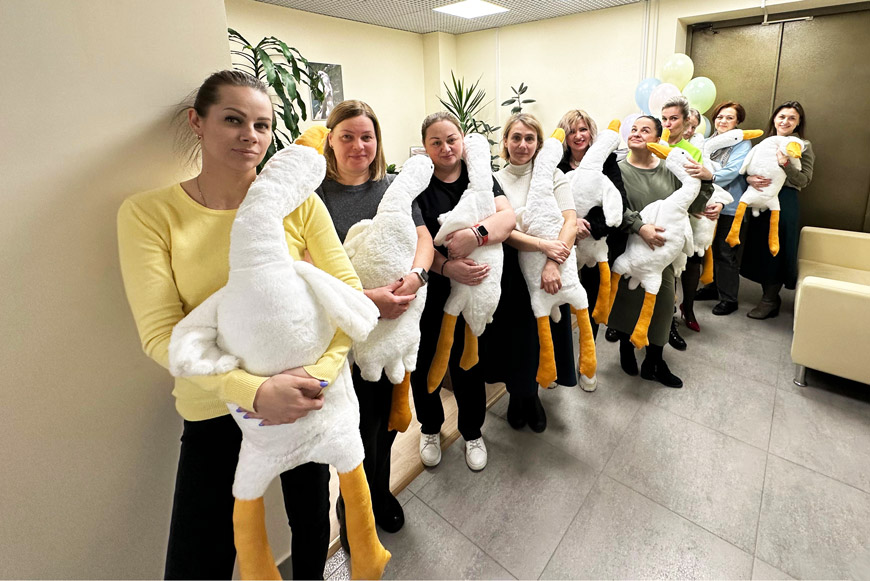 Ребятам из компании «МОСКВА-СОКОЛ» сюрприз тоже удался. Девушки, придя на работу 7 марта, обнаружили, что офис оккупирован гусиной стаей. Гуси сделали им день. И не только гуси. С утра мужчины заботливо варили кофе и проявляли внимание всеми доступными способами, а это всегда приятно.