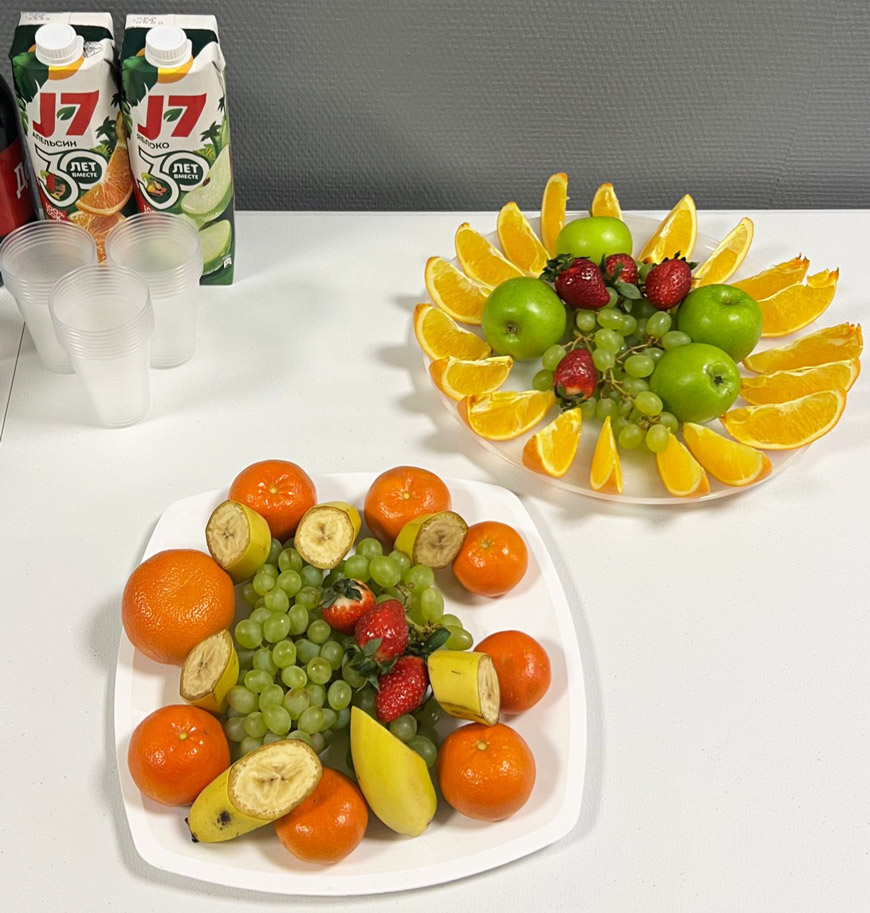 На суперкалорийное поздравление с 23 февраля, когда для мальчиков компании «СОТЕЛ» устроили блинную, мальчики ответили фитнес-поздравлением, подготовив для девушек фруктовые тарелки.