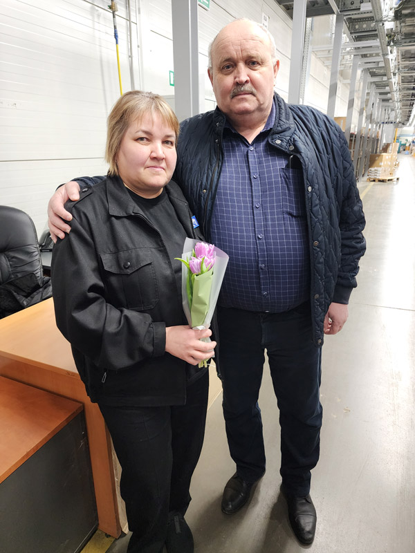 Сотрудниц ЧОП «ВПК-Безопасность» поздравили на постах. Украсили немного тюльпанами службу Юлии Яшковой и Эльвиры Хорьковой. Чтобы поздравить Эльвиру Геронтиевну, генеральный директор компании Дмитрий Шадров и начальник отдела охраны Александр Трошин специально съездили в Химки. Там у «Безопасности», помимо площадки «СОЦИУМА», есть ещё один объект охраны – склады «Аптеки.ру».