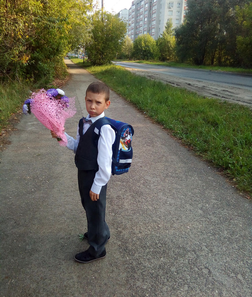Родион такой серьёзный, потому что обиделся… ни на кого-то, а просто так. Это бывает. Всё-таки день такой ответственный – первый раз в первый класс.