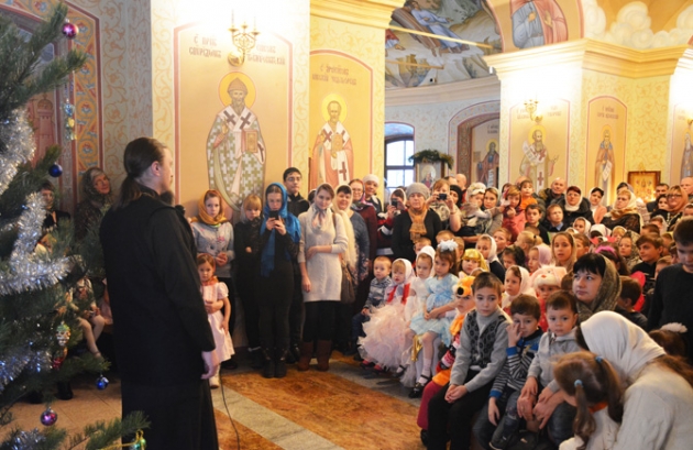 Перед началом праздника гостей приветствовал отец Василий Лютянский – благочинный Шатковского округа Нижегородской области. Он рассказал детям, что такое Рождество, и о том, как его принято праздновать в России.