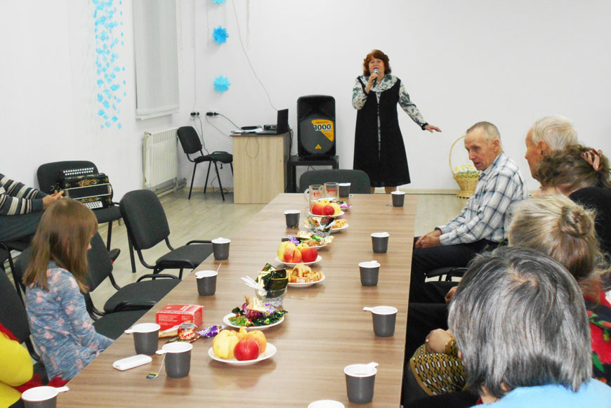 Вот и сегодня Нина Гуськова и Лидия Выголова исполнили несколько народных песен и романсов. Продолжился вечер уже хоровым исполнением известных песен. Вспомнили и песни из старых фильмов, и песни советской эстрады, и современных исполнителей. Лирическое настроение сменилось шуточным. Под весёлые и задорные частушки гости пустились в пляс.