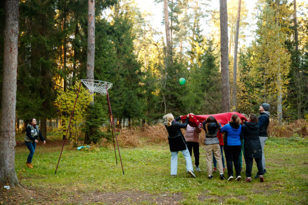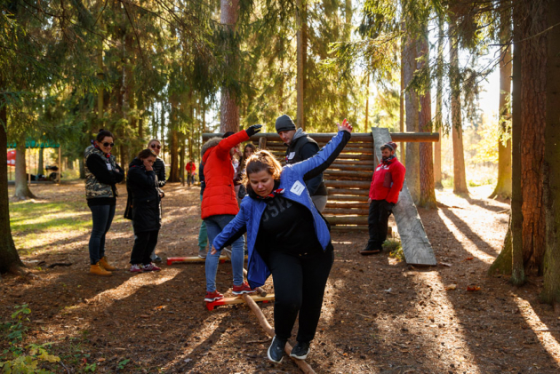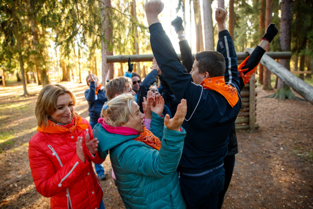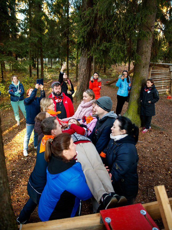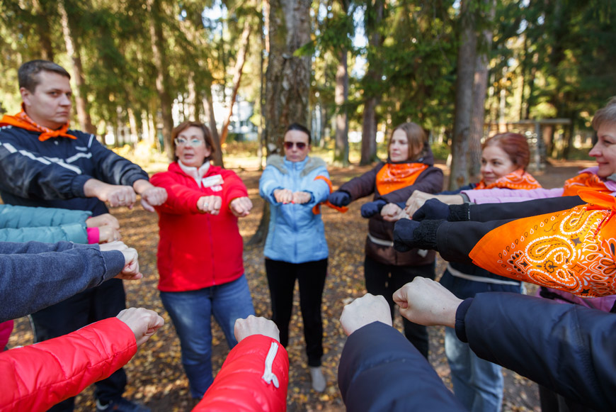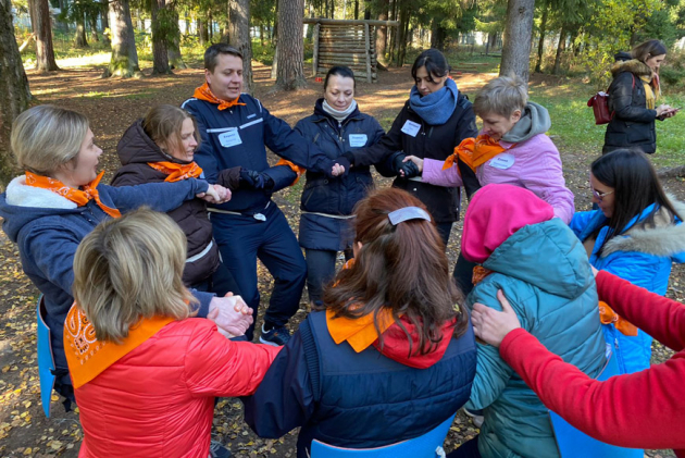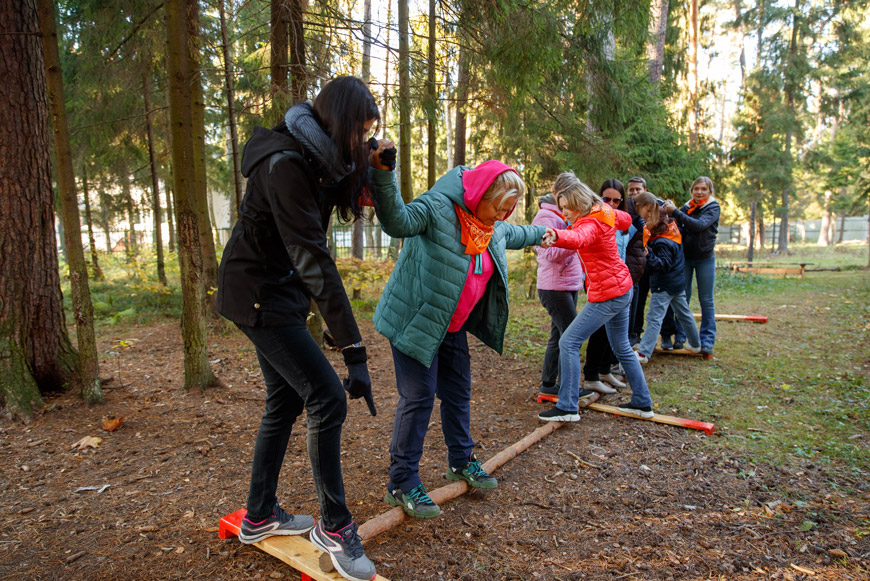 8 октября 2021 года сотрудники централизованных служб холдинга вместе с членами Правления АО «СОЦИУМ-А» выехали в один из пансионатов Подмосковья для прохождения верёвочного курса. Правда, слово «верёвочный» тут использовалось, скорее, в метафорическом значении, поскольку никаких верёвок на площадке не обнаружилось. А вот упражнений на «связку» – на умение взаимодействовать, поддерживать друг друга и совместно принимать решения – было в избытке.