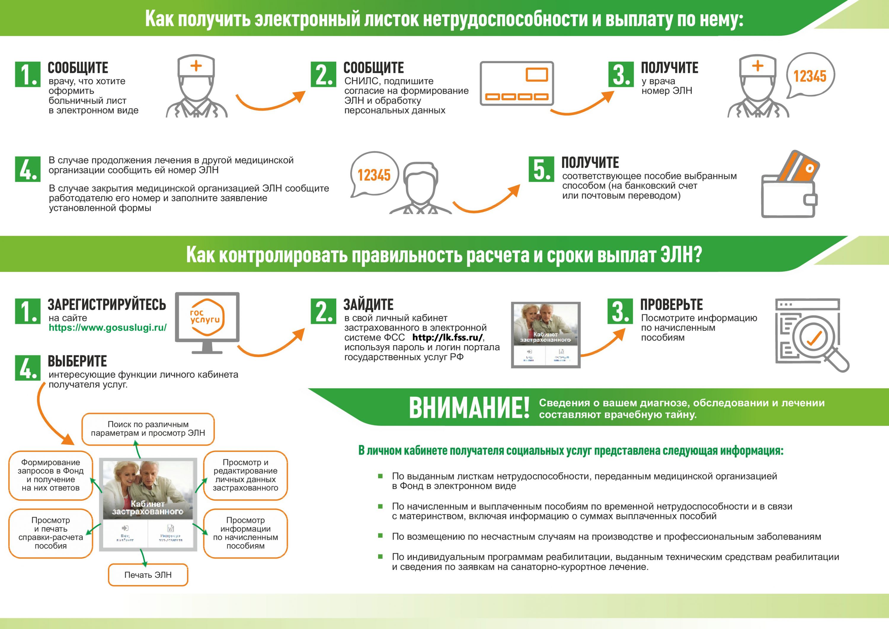 Пациент получает номер больничного, который он должен сообщить по месту работы. Если пациент забыл номер, то его можно узнать в личном кабинете на сайте госуслуг. Согласитесь, что такая система удобнее. Не приходится беспокоиться о том, как бы не потерять важный документ, выяснять, как юридически точно называется компания и должность. Во время болезни уж точно меньше всего об этом думаешь, а вот когда придёт время получать выплаты, могут возникнуть проблемы.