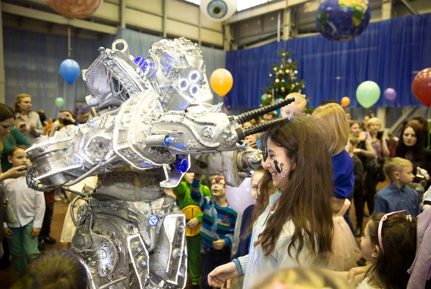 Но маленьким гостям трудно сосредоточить внимание на чём-то одном: хочется быть везде и сразу – сотворить своими руками космическую ёлку и украшения для неё, декорировать новогоднюю ракету из пластиковой бутылки, посидеть за гончарным кругом, превратиться под руками мастеров по аквагриму в сказочного героя, полакомиться чем-нибудь сладеньким в буфете, провести необычный физический опыт вместе с профессором-инопланетянином, посмотреть 3D фильм в сферическом кинотеатре «Планетарий» и успеть на шоу страшных, но добрых роботов.