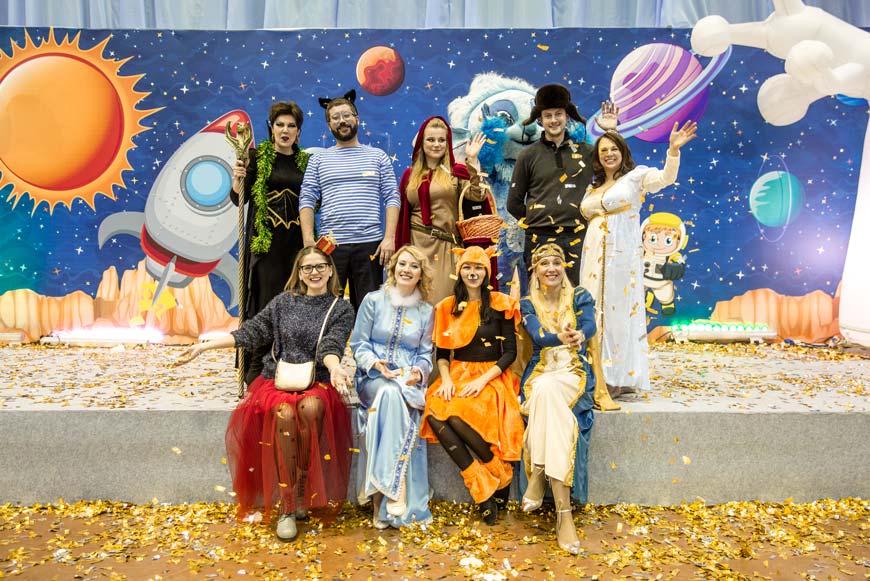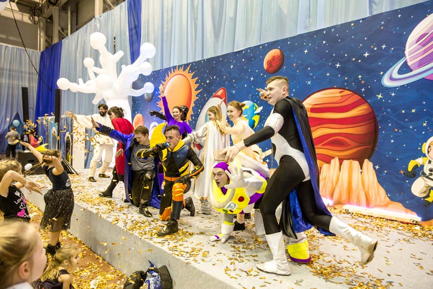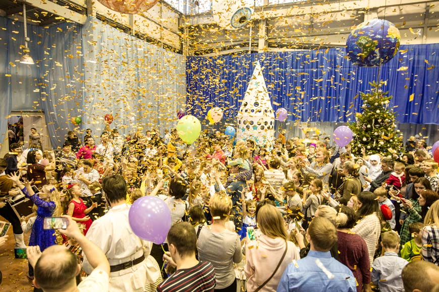Оживлённый поток гостей стремится в главный зал. Каждый ожидает чего-то необыкновенного. В честь 60-летнего юбилея запуска первого искусственного спутника Земли и первой годовщины со дня основания космического государства Асгардия, которое появилось благодаря бенефициару холдинга «СОЦИУМ», учёному и промышленнику Игорю Ашурбейли, темой новогоднего детского праздника решили сделать Космос.