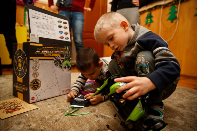 Вы бы видели, с какой скоростью и нетерпением здесь рвут обёрточную бумагу на коробках – любо-дорого посмотреть. Вокруг бравых парней и девчонок лет 6-9 только клочья летели. Ребята постарше – опять-таки посдержанней, но так и лучатся, когда видят то, что хотели получить.