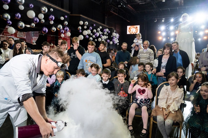Эти развлечения и взрослым нравятся. Вместе с детьми они участвуют в мастер-классах, ставят взрывные опыты вместе с Чокнутым профессором, водят хоровод, ваяют керамику на гончарном круге, пишут письма Деду Морозу на нашей традиционной Новогодней почте, отрываются на бумажной дискотеке. Хотя у большинства на этой площадке была своя важная задача. Руководители и сотрудники «СОЦИУМА», переодевшись в новогодние костюмы, встречали и развлекали гостей вместе с артистами, работали в буфете и на раздаче подарков, следили за безопасностью детей. Всё это яркое, нарядное, праздничное пространство было оформлено их руками. Для этого накануне прошлось потрудиться, захватив и день и ночь. Но оно того стоило!
