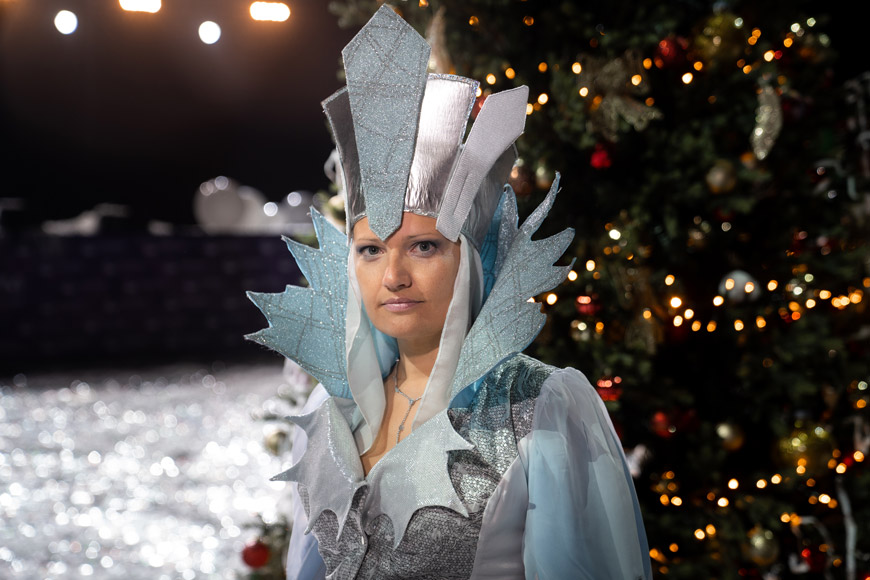 Снегурочка – очень ответственный персонаж на новогодней ёлке, и появляется он обычно в конце, а я тут с самого начала. Поэтому не решусь назвать себя Снегурочкой, несмотря на сходство нарядов. Будем считать, что я её сестра.