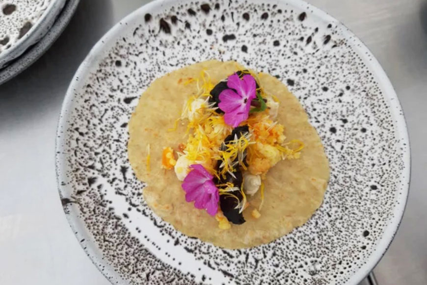 Это тако Александра Николаенко, шефа нижегородского кафе «Селёдка и кофе», с пшеном. По сути — натуральный татарский кыстыбый: лепёшка с пшённой кашей. Жалко даже, что Булат, когда Саша делал этот тако, вышел из шатра, он бы очень оценил.