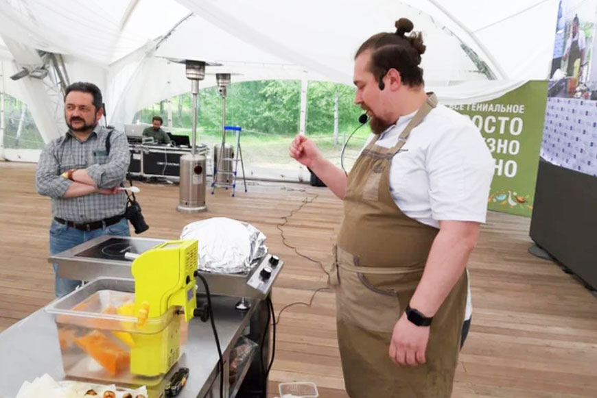 И параллельно этому в шатре под названием «Кулинарный театр» происходят профессиональные мастер-классы. В этом году их вёл я.