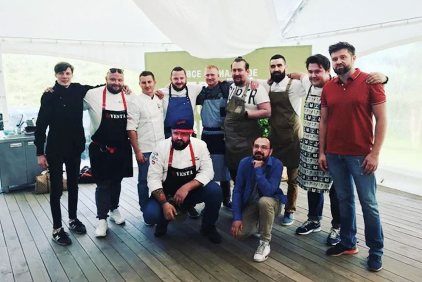 Александра Волкова-Медведева, шефа московского ресторана Ruski; Булата Ибрагимова, бывшего шефа московских «Южан», который вернулся в родную Казань; Антона Ивницкого, бренд-шефа ульяновской ресторанной группы «Матрёшки»; Андрея Лазарева, шефа сочинского ресторана «Магеллан». Ещё приехал уже не в первый раз Максим Рыбаков, который долгое время работал в Суздале, а сейчас помогает делать рестораны в разных городах, от Липецка до Тюмени. Приехал для кооперации с Булатом Петя Павлович, хозяин московской мясной мастерской «Петя и мясо». И приехали по традиции нижегородские шефы – Андрей Сулима и Александр Николаенко.