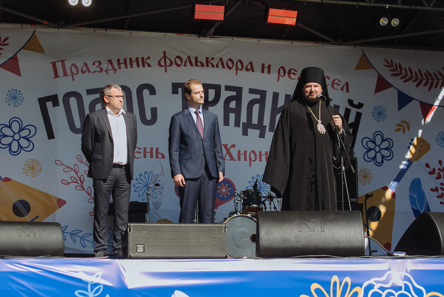 Сценарий фестиваля – это, по сути, реконструкция сельских престольных праздников стародавних времён. Начинается «Голос традиций» с Божественной литургии. В этом году с благословения митрополита Нижегородского и Арзамасского Георгия, освящавшего хиринский Предтеченский храм в 2013 году, её совершил викарий Нижегородской епархии епископ Дальнеконстантиновский Филарет. А далее генеральный директор АО «СОЦИУМ-А» Игорь Ильин вместе с владыкой и главой местного самоуправления Шатковского муниципального округа Максимом Межевовым открыл фестиваль для гостей села, после чего на поле вокруг храма развернулась шумная ярмарка с мастер-классами, дегустациями и бесплатными угощениями от организаторов.