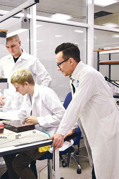 Лаборатория создана в конце 2017 года. На сегодня в ней трудятся шесть специалистов. Каждый в основном занимается своей непосредственной работой, иногда ребятам приходится совмещать обязанности. Например, программист, помимо написания программ, испытывает устройства, для которых написаны программы, и пишет подробные отчёты, начальник лаборатории, помимо административной работы, разрабатывает электронные схемы, программное обеспечение для встроенных микропроцессоров, проводит моделирование процессов управления.