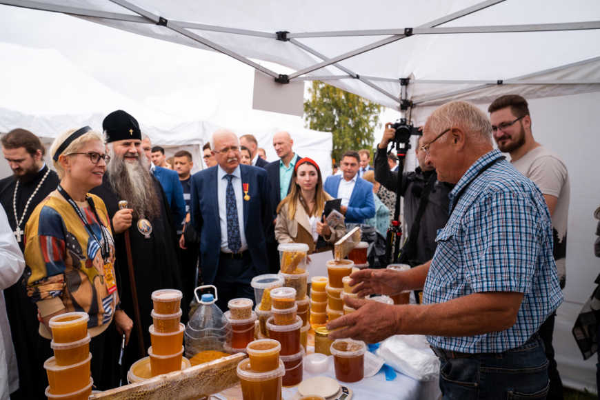 Ярмарочное гуляние проходит на лоне бескрайних полей. Здесь гармонично выглядят сотни людей в народных костюмах, колоритные торговцы, забавные скоморохи, деловитые ремесленники. Тут можно самому поработать на старинных ткацких или гончарных станках. Желающие запастись фермерскими продуктами могут быть уверены в их полной натуральности.