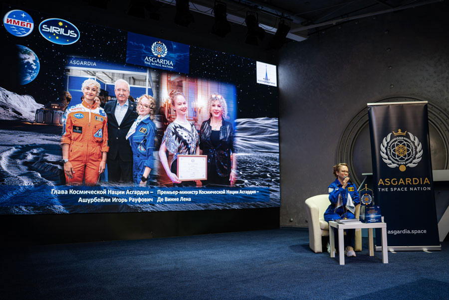 В своём выступлении Де Винне подчеркнула связь научного эксперимента SIRIUS-23 с глобальной философской миссией первого в мире космического государства. Его основатель Игорь Рауфович Ашурбейли как главную цель Асгардии поставил рождение первого человеческого ребёнка в космосе.