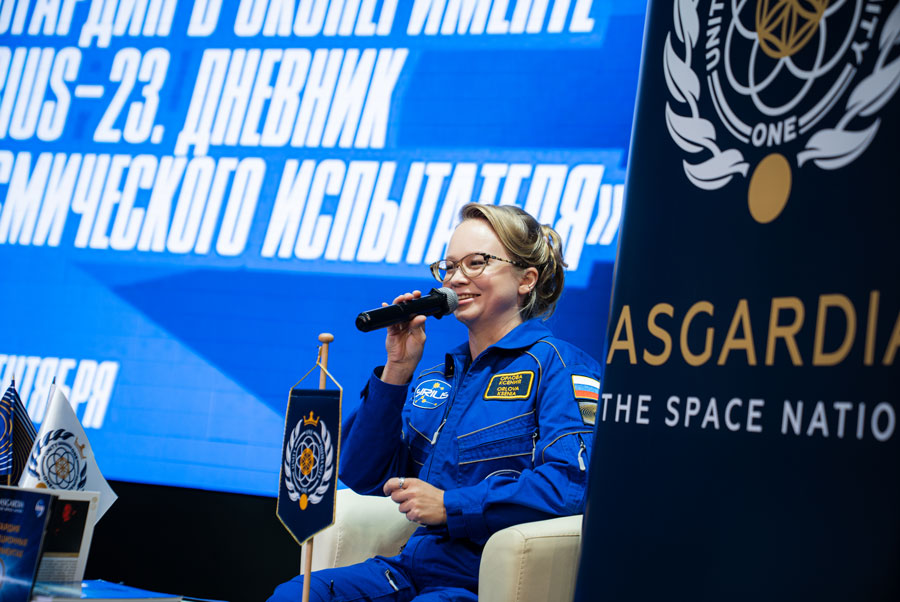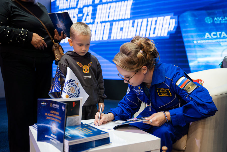 А затем к микрофону вышла героиня события – Ксения Орлова, резидент Асгардии, младший научный сотрудник ИМБП РАН, врач по авиационной и космической медицине. Именно её дневник, который она вела на протяжении всех 366 дней изоляции, лёг в основу издания. Ксения предстала не просто как учёный-испытатель с сухими научными отчётами. Она простым человеческим языком описала, что значит на год оказаться в замкнутом пространстве, отрезанным от семьи, друзей, от привычного мира с его простыми радостями и, конечно, без мобильного телефона.