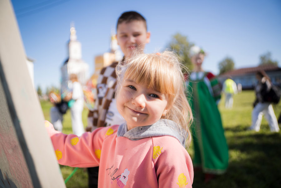 После богослужения начала работу ярмарка, были организованы интересные активности для детей и взрослых: старинные русские забавы, спортивные мероприятия и мастер-классы – плетение венков, роспись матрёшек и дымковских игрушек, изготовление кукол-оберегов, роспись по ткани и другие.