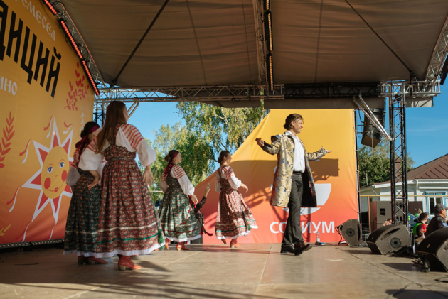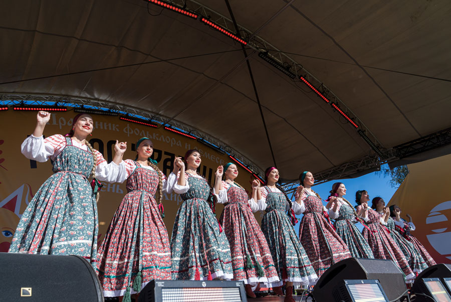 – Здравствуйте, я Юлия, – добавляет ещё одна участница. – Фестиваль, а точнее праздник фольклора и ремёсел «Голос традиций», – это не просто праздник, это праздник русской культуры, русской традиции. То, что заложено у нас у всех в глубине души, и то, что заставляет её распахнуться, пуститься в пляс, иногда и прослезиться, потому что это всё наше, всё родное.